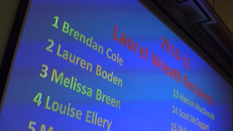 National Champions and ACTAS scholarship holders Brendan Cole, Melissa Breen and Lauren Boden have scooped the awards at the Athletics ACT end of year presentation night. This was symbolised with them taking numbers 1, 2 and 3 in the prestigious laurel wreath number allocation ranking athletes according to performance in the 2009/2010 season.