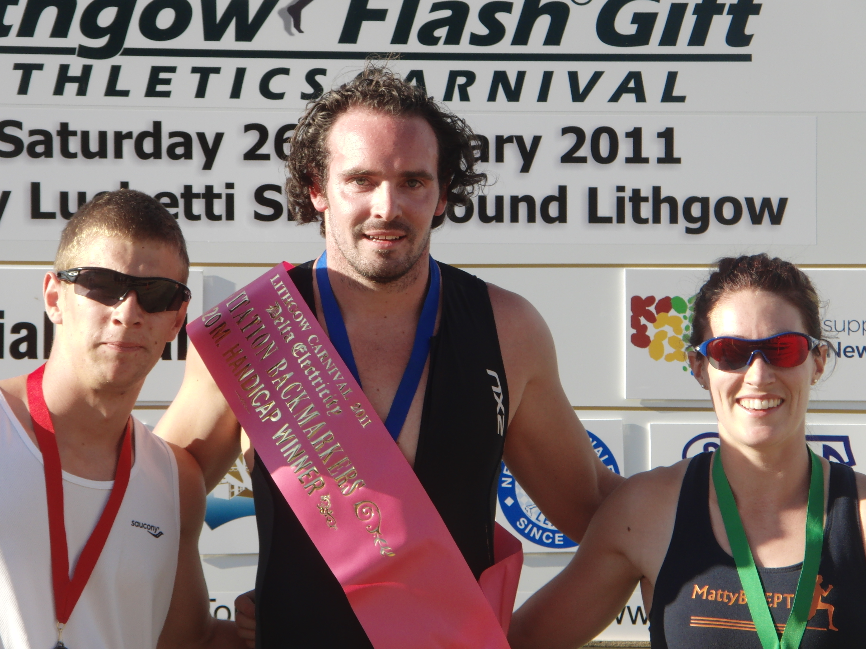 Brandan then went on to win the Invitation 120m Backmarkers from a mark off 1.25m beating training partners Brendan Matthews (0.5m) and Lauren Boden (11.5m)